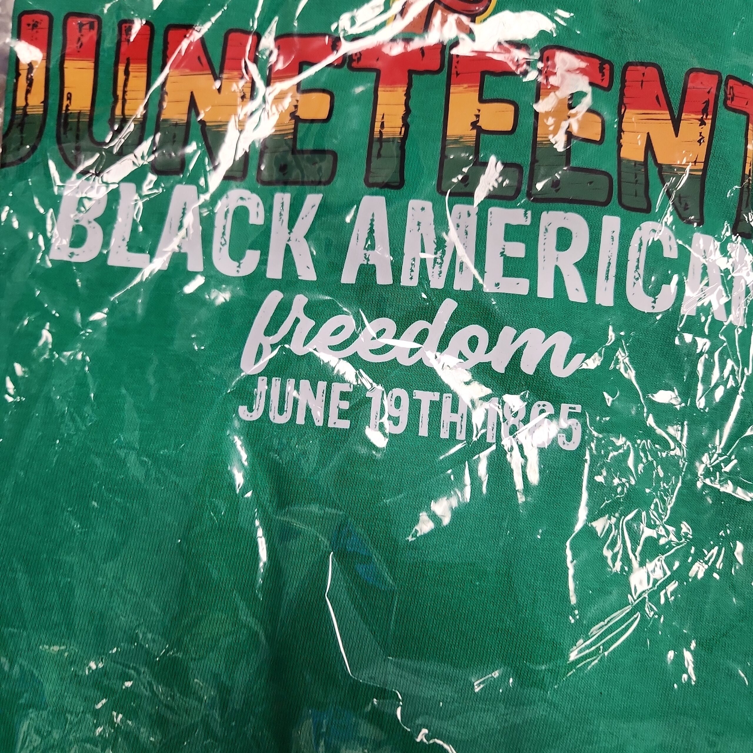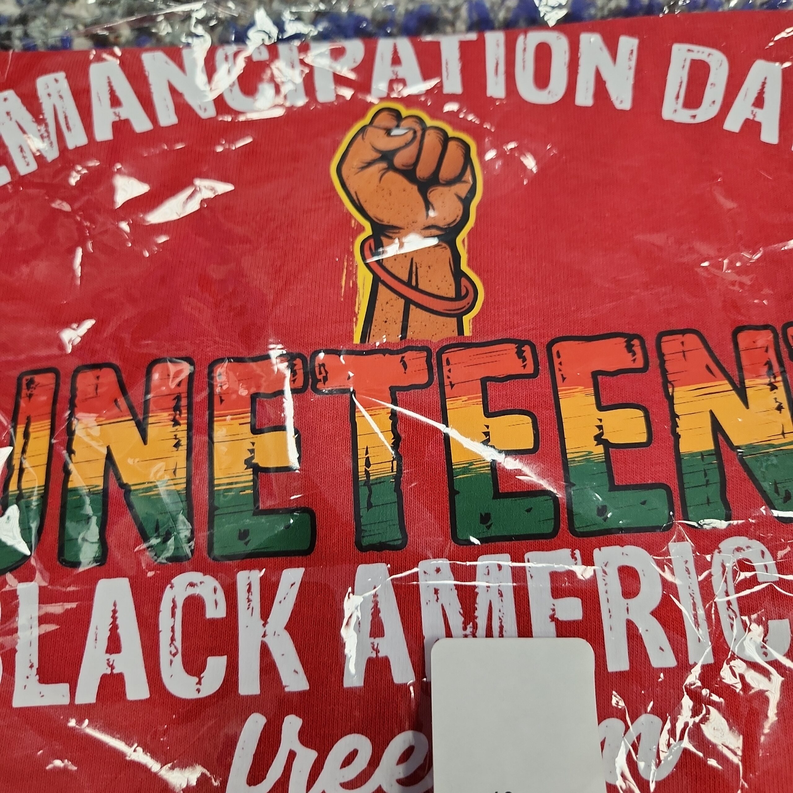 Celebrate Juneteenth with this stylish and meaningful t-shirt. Featuring a powerful design, it honors the emancipation of enslaved African Americans. Perfect for showing solidarity and spreading awareness.