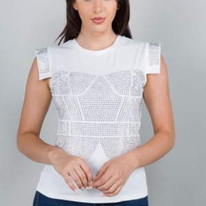 White rhinestone shirt short sleeve
