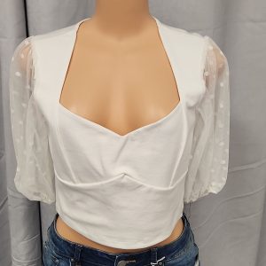 White 3/4 Sheer sleeve Crop top
